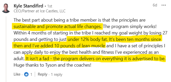 Lose 20-50 lbs or reach 10-15% body fat in 6 months (as a sustainable lifestyle) or we’ll keep coaching you for free until you do.